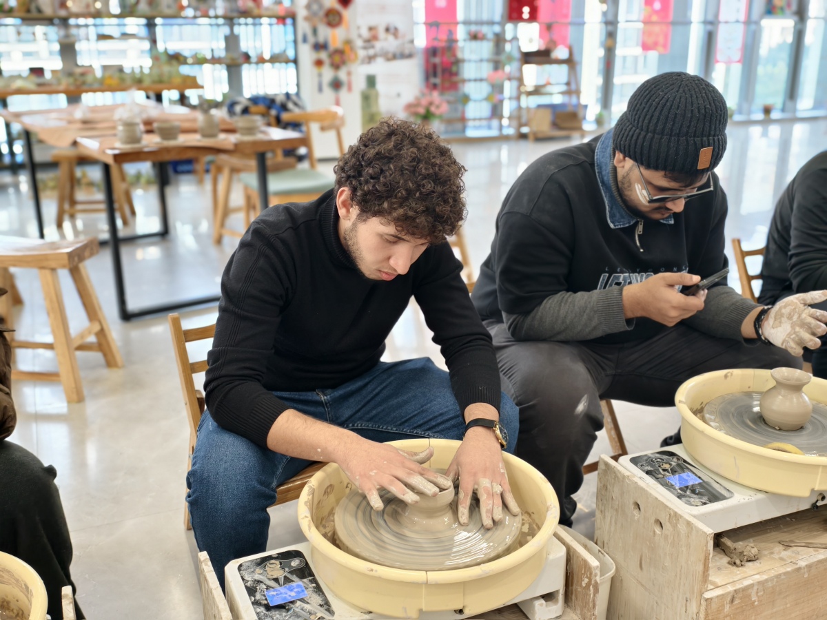 来自也门的阿里看着自己亲手制作的陶艺杯塑型完成,忍不住拍照发朋友圈“炫耀”一番,“从平平无奇的一块泥巴到一件漂亮的艺术品,我感觉很神奇,它让我感受到了泥土的魅力和创作的乐趣。”